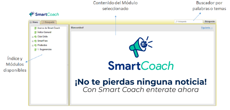 Encontrarás este ícono con MENUES relacionados al tema que se encuentra leyendo. Esto te permitirá redireccionarte dentro del SmartCoach para profundizar en alguno de esos temas.