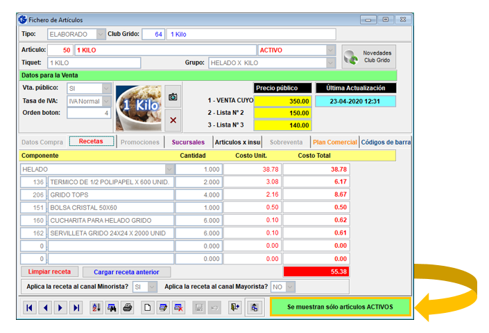 Con la versión 9.02 llega el nuevo filtro del Fichero de Artículos que te permitirá solo visualizar y gestionar los artículos, insumos y promociones que se encuentren activos, y vas a poder ocultar los que tengas inactivos y no estés utilizando.