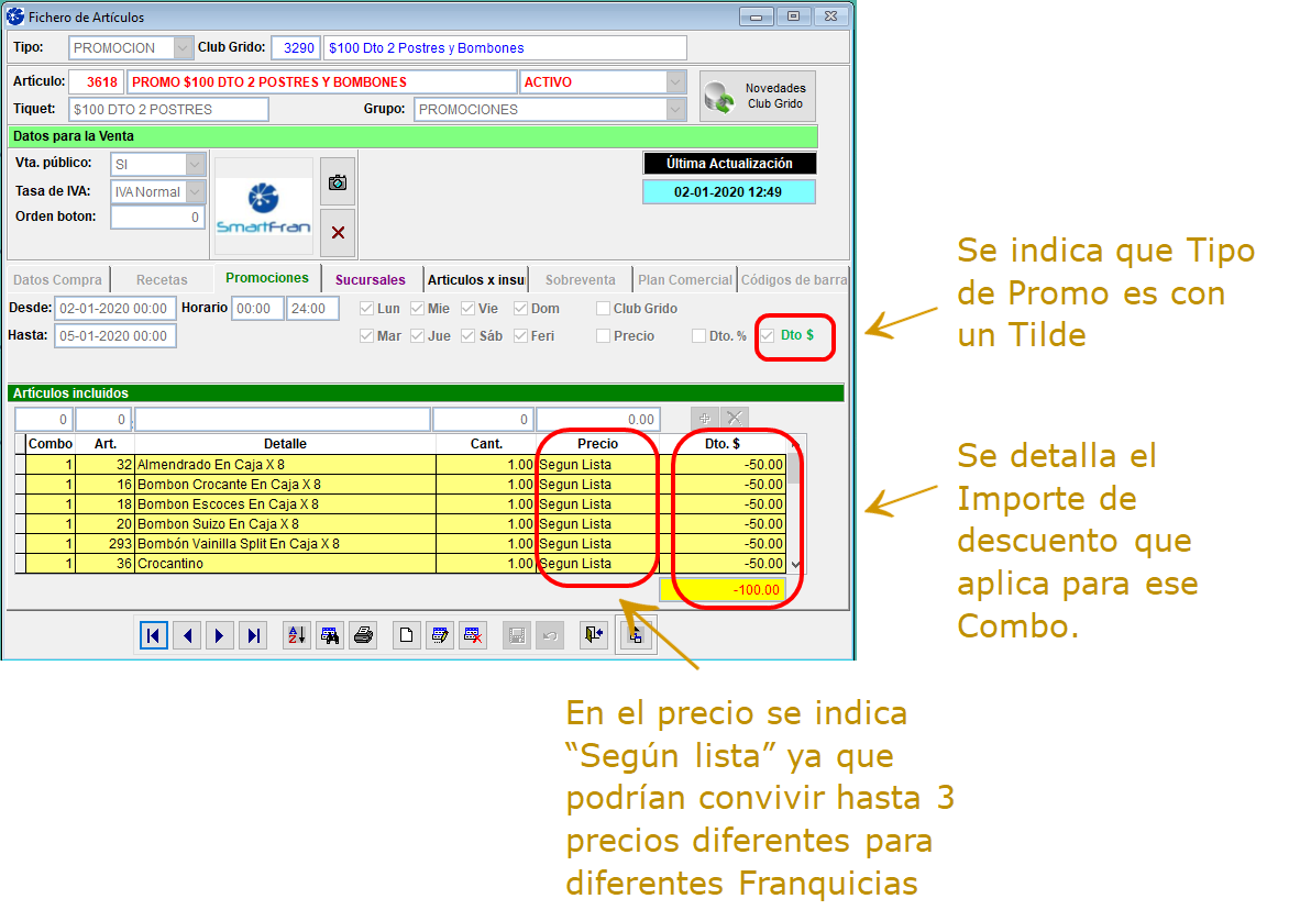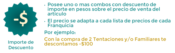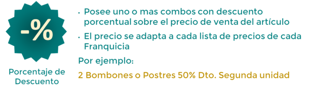 Estos nuevos formatos de Promociones no poseen precio fijo ya que el mismo es calculado para cada Punto de ventas según el precio de los artículos que lo componen y el descuento porcentual o de importe que posea cada combo.