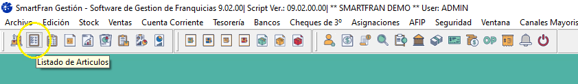 2) Podrá hacerlo utilizando el "Listado de Artículos" ubicado en el Menú de acceso rápido, junto al Fichero de Artículos: