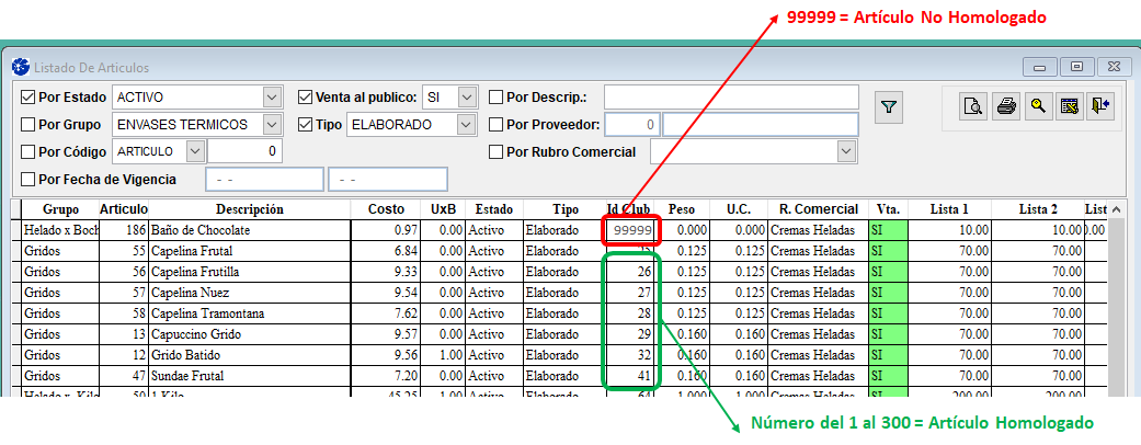 1) Compare el listado de Artículo Homologados con su Fichero de Artículos y verifique si posee Artículos NO HOMOLOGADOS disponibles para la venta.
