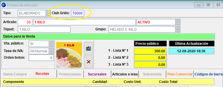 Asegúrese de colocar el N° correcto para que las ventas de ese Artículo impacten adecuadamente en Gestión Franqu.