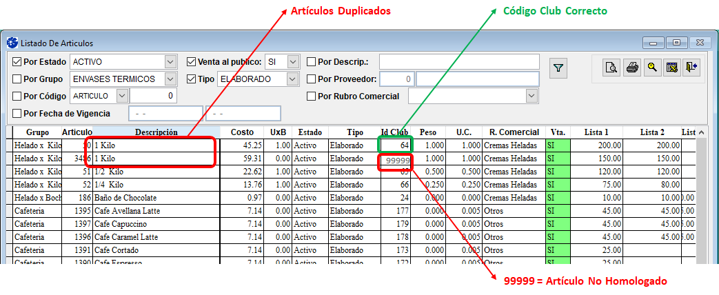 - Puede utilizar nuevamente el "Listado de Artículos" ordenándolos por "Descripción" para verificar.